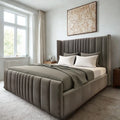 The Harper Winged Bed Frame is designed to transform your bedroom into a sanctuary of sophistication, combining bold design with refined luxury. Its commanding winged headboard, adorned with beautifully deep fluted detailing, creates an architectural presence that instantly elevates the atmosphere of your space. The tall vertical panels draw the eye upward, forming a striking silhouette that balances contemporary style with timeless charm, making it a centerpiece that never goes unnoticed.